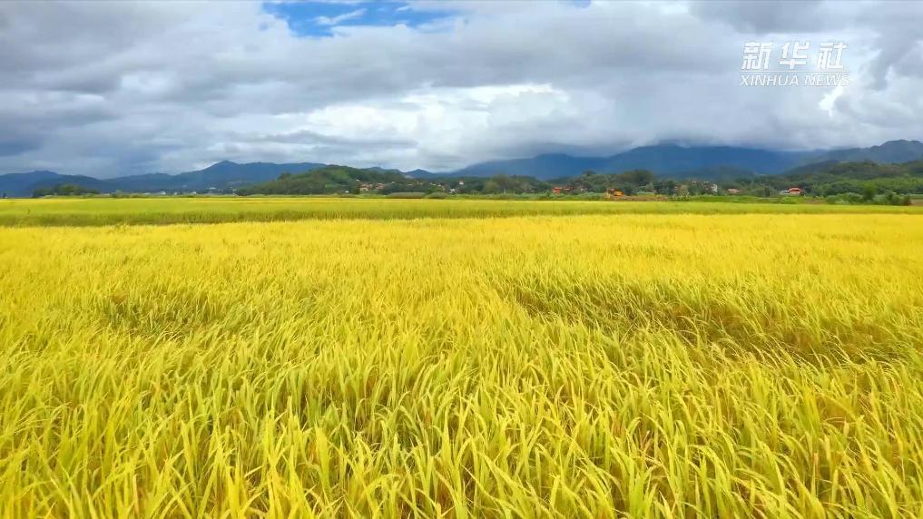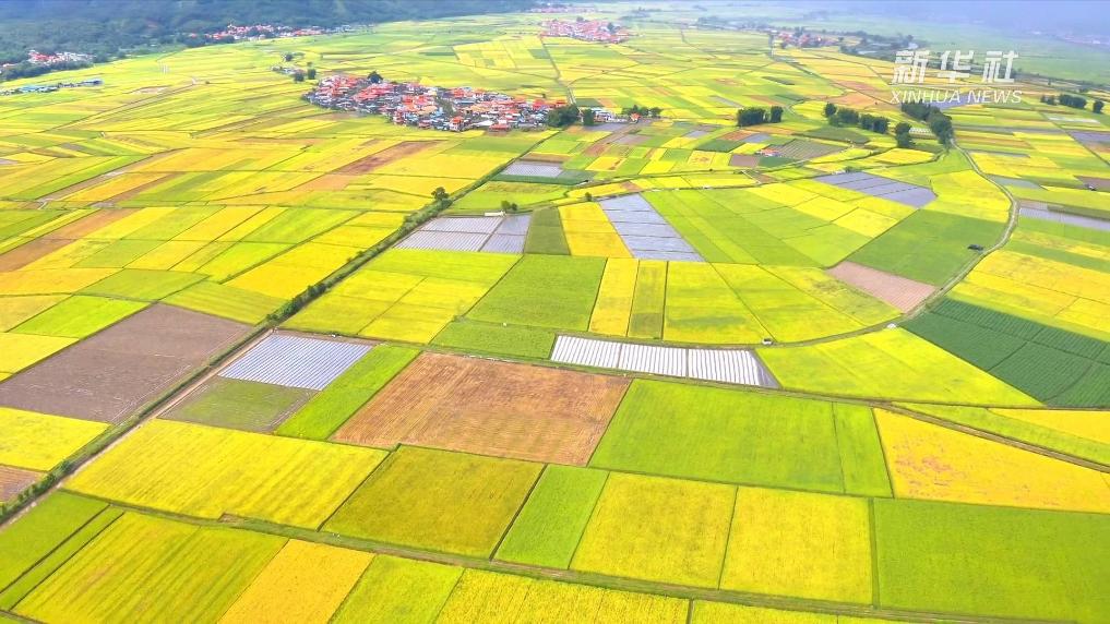 立秋過后,村落被一抹金黃包圍,錯落有致的農田與青山白云遙遙相對。