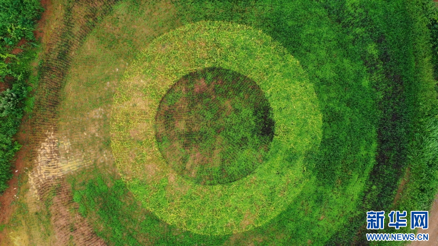 彩色稻田里的“同心圓 ”(8月22日攝)。新華網發(陶平 攝 )
