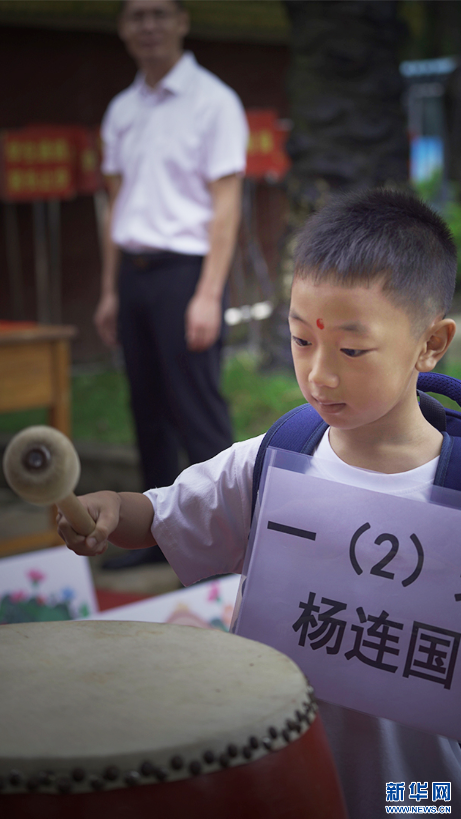 新生擊鼓鳴志(9月1日攝)。新華網發(德宏州融媒體中心供圖)