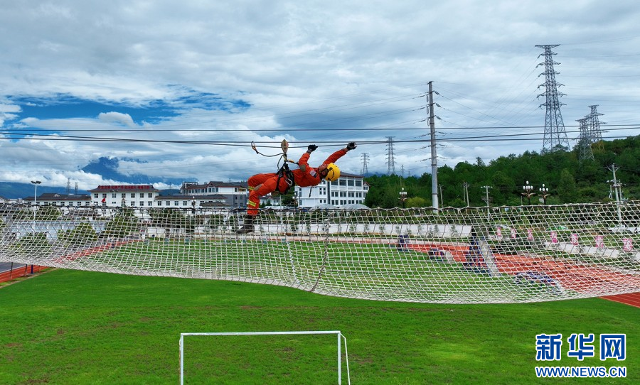 森林消防員在進行過繩結訓練(8月31日攝)。新華網發(王偉 攝)