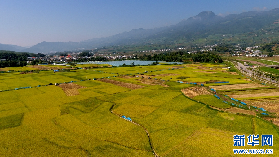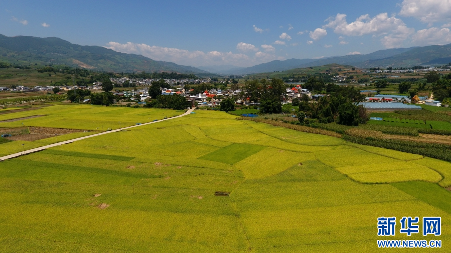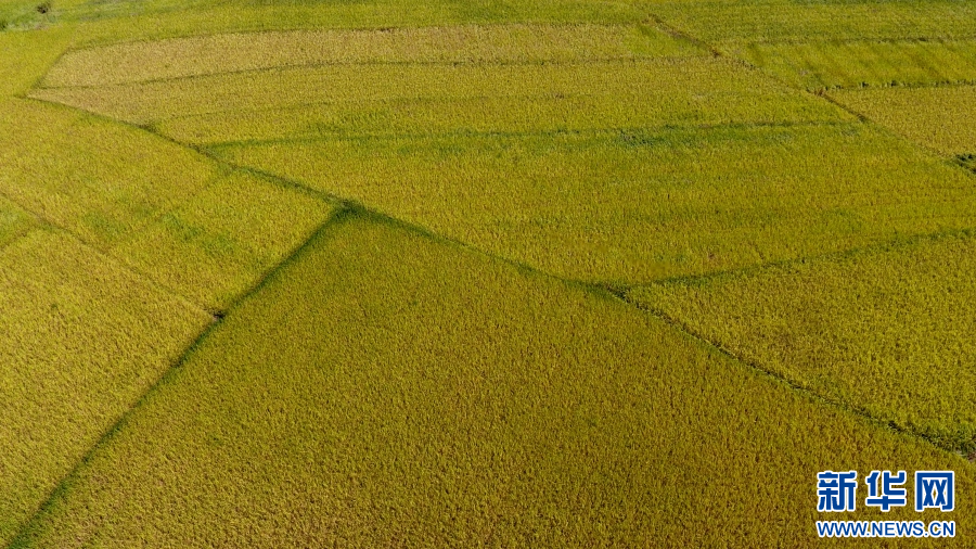 又到一年豐收季,近日,云南省保山市昌寧縣11萬畝水稻開鐮收割。在昌寧縣柯街鎮芒賴社區,高空俯瞰,田野滿目金黃。當地群眾抓住晴好天氣搶收水稻,確保顆粒歸倉。