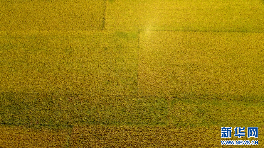 航拍鏡頭下田野滿目金黃(9月3日攝)。新華網發(劉子安 攝)