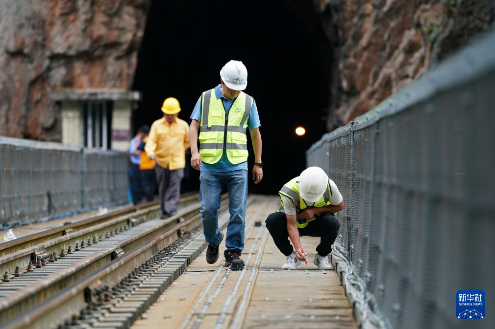 9月6日,中國鐵路昆明局集團公司三名參與檢測的工作人員在觀察米軌列車通過人字橋。