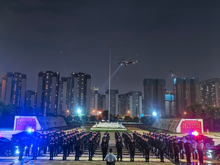 第三次夏夜治安巡查宣防集中統一行動啟動儀式現場(9月8日攝)。五華分局供圖