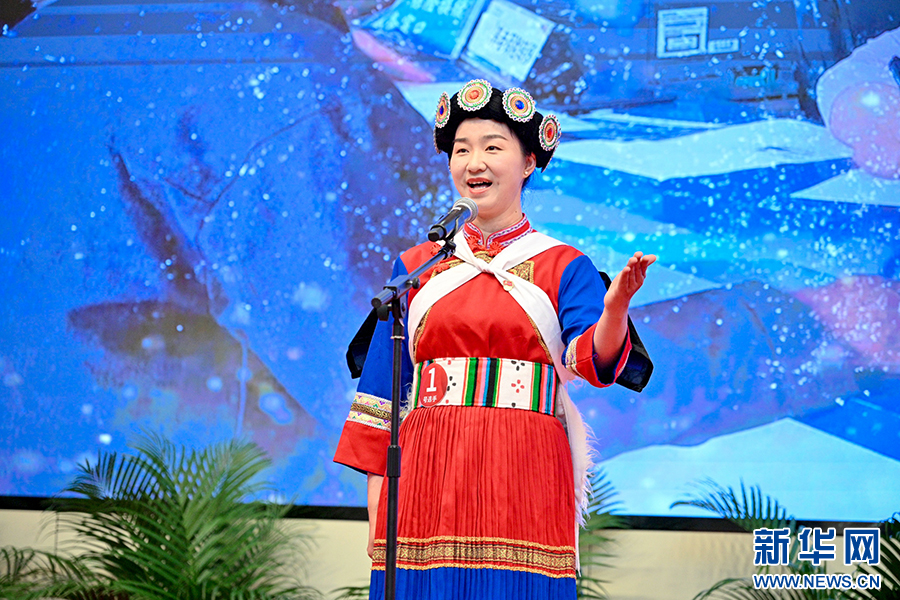 成人選手身著民族服飾演講(9月9日攝)。新華網發(云南省文明辦 供圖)