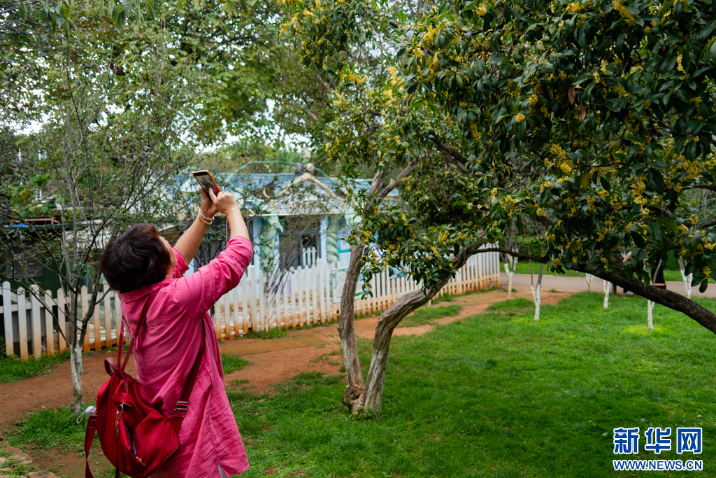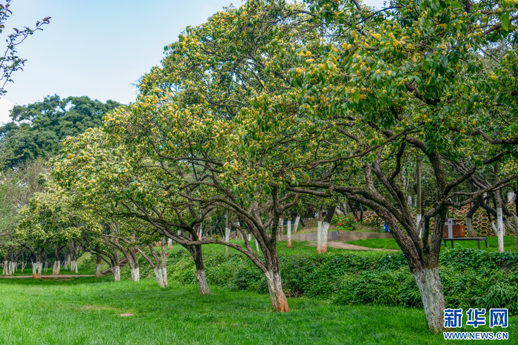 進入九月,昆明動物園內海棠大道中段旁的桂花已經盛開,淺黃的桂花在綠葉的掩映下散發著陣陣清香,吸引了不少市民游客前來觀賞。