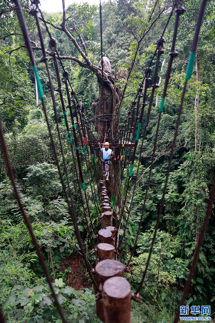 在象出沒雨林營地可以體驗雨林探險項目(9月13日攝)。新華網發(劉云 攝)