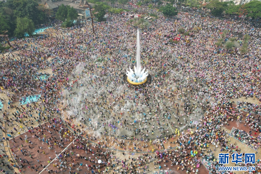 人們齊聚景洪市潑水廣場,互相潑水祝福,歡度潑水節(4月15日攝)。新華網發(徐華陵 攝)