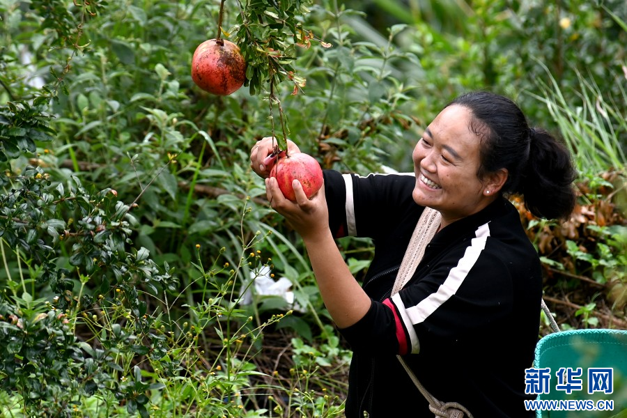 石榴喜獲豐收,農民采摘忙(9月19日攝)。新華網發(適志宏 攝)