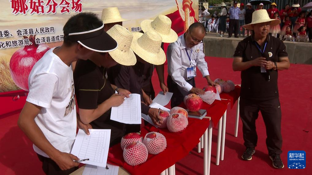 今年云南省會澤縣石榴大豐收,當地在石榴主產區娜姑鎮組織“石榴王”比賽。十多家石榴種植戶精心挑選種植的十二個石榴參加評比,專家組通過查看果形、色澤以及稱重等環節,評選出“石榴王”、“石榴皇后”、“石榴王子”和“石榴王妃”。通過現場稱重石榴王重量達1548克。評選出結果后,進行了現場拍賣。