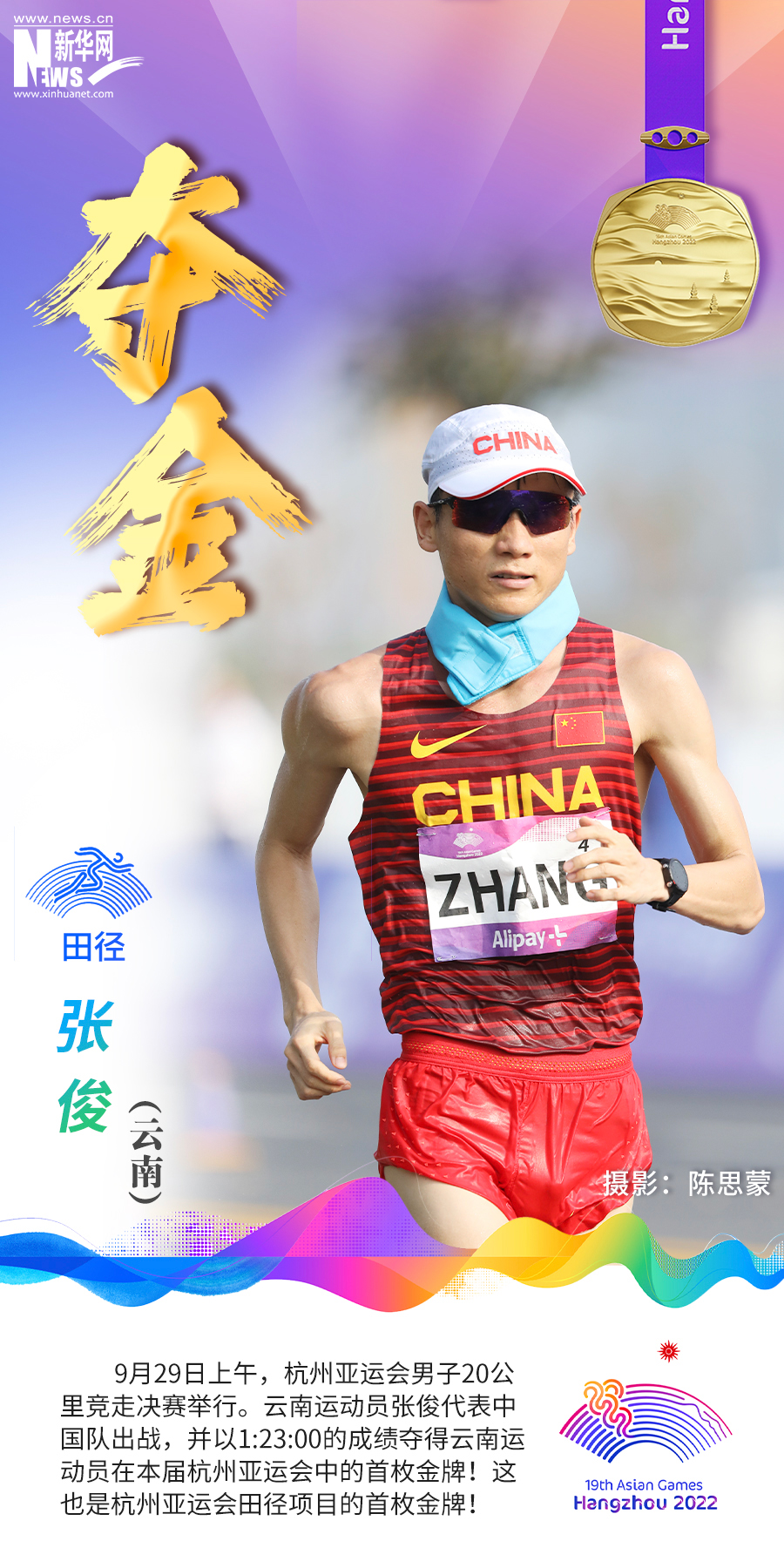 9月29日上午,杭州亞運會男子20公里競走決賽舉行。云南運動員張俊代表中國隊出戰,并以1:23:00的成績將云南運動員在本屆杭州亞運會中取得的首枚金牌收入囊中。這也是杭州亞運會田徑項目的首枚金牌?。ㄍ辏?/p>