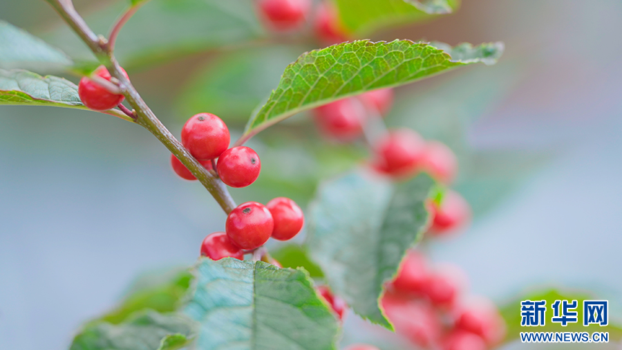 九月,在位于云南省楚雄彝族自治州武定縣貓街鎮三家村的武定縣尚農紅果種植基地里,北美冬青隨風搖曳,晶瑩剔透。