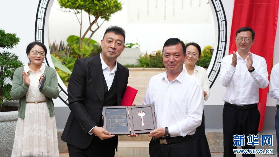彌渡黃紹成文化小院揭牌儀式現場,贈送“彌渡縣榮譽縣民鑰匙”(10月1日攝)。新華網發(劉云 攝)