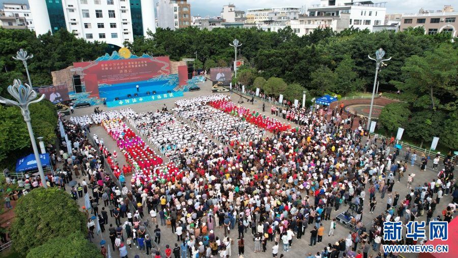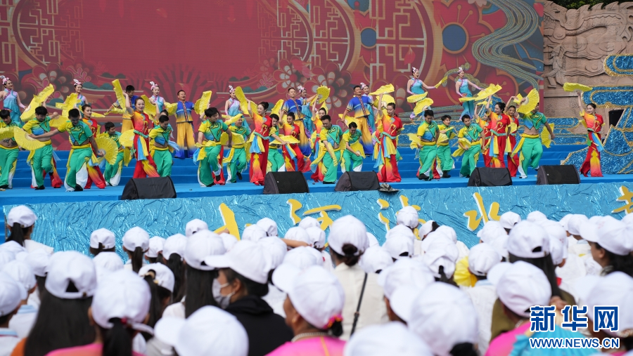 開幕式現場,民歌、花燈節目輪番上演(10月1日攝)。新華網發(劉云 攝)