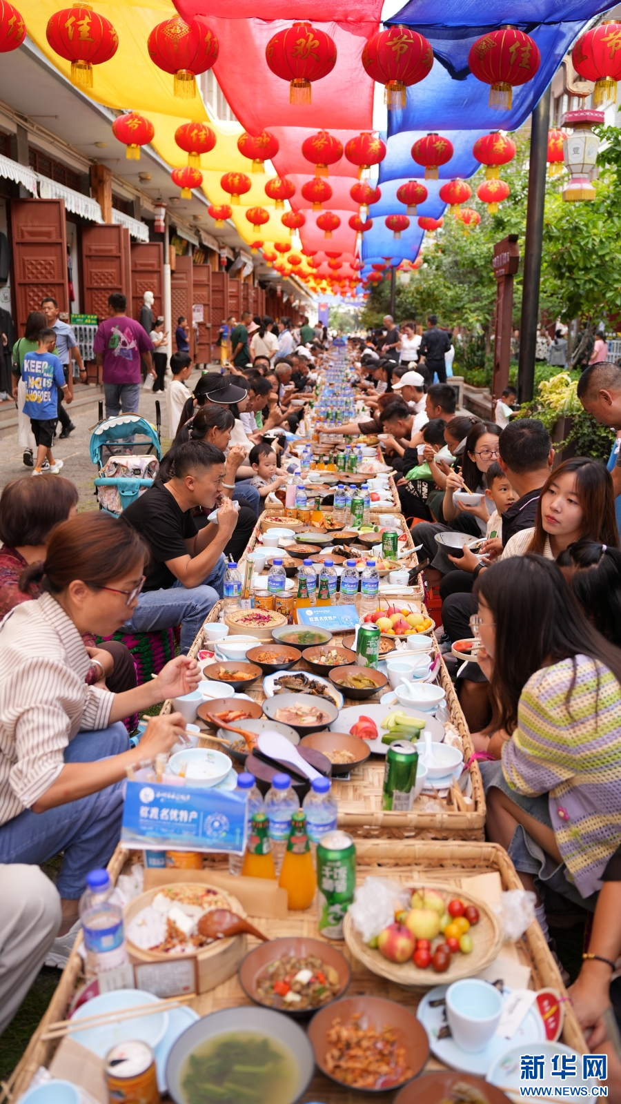 “彌渡宴”長街宴品鑒活動沿街開擺(10月1日攝)。新華網發(劉云 攝)