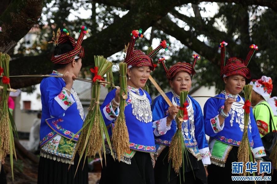 人們身著盛裝,慶祝稻谷豐收(9月28日攝)。新華網發(陳會敏 攝)