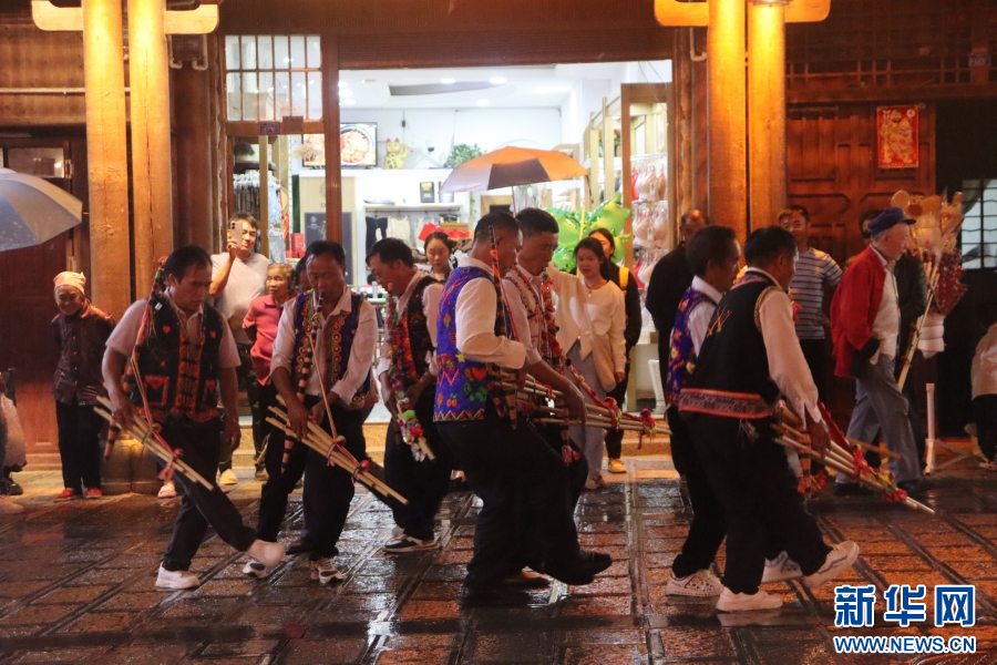 古城南街上,工作人員開展民俗演藝(9月27日攝)。新華網發(陳會敏 攝)