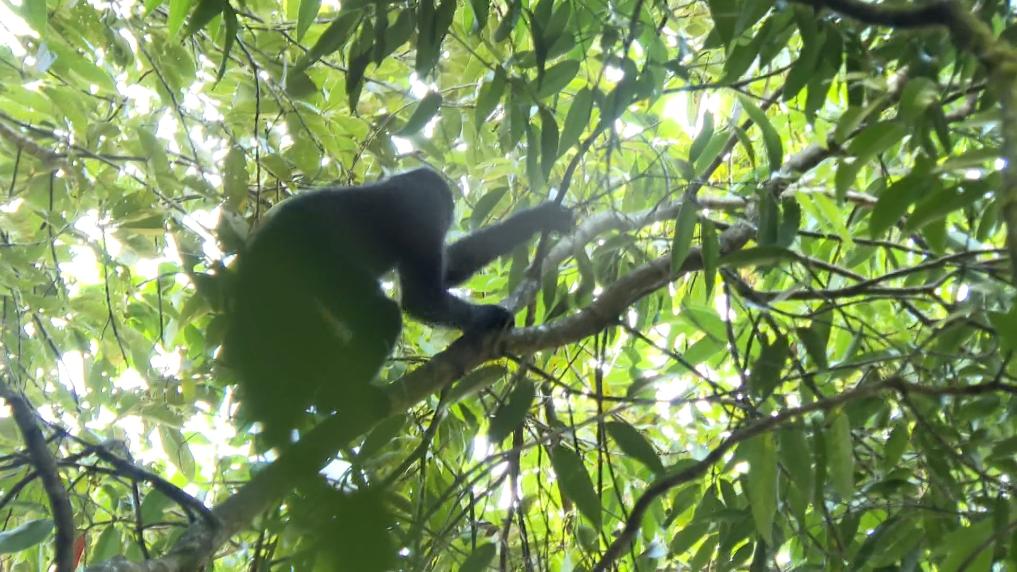 近日,云南省普洱市森林消防支隊的消防員在云南無量山國家級自然保護區開展林區巡護工作時,偶遇一群正在林間穿梭的西黑冠長臂猿。
