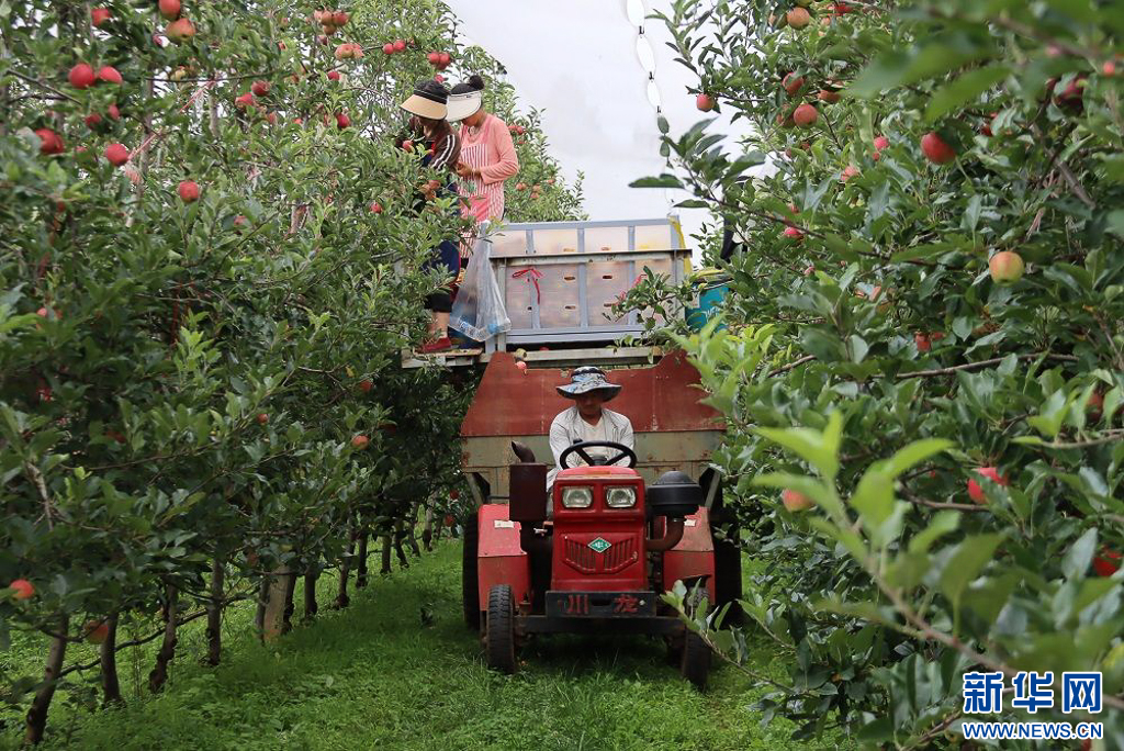 蘋果機械化采收 (10月6日攝)。新華網發(魯甸縣融媒體中心 供圖)
