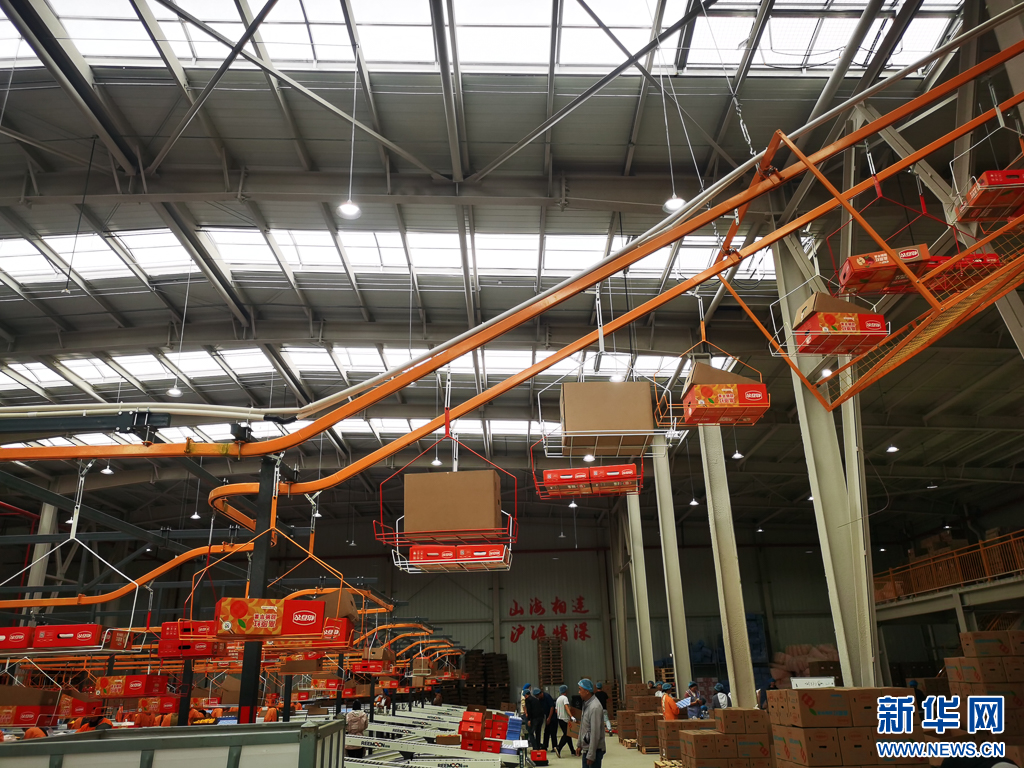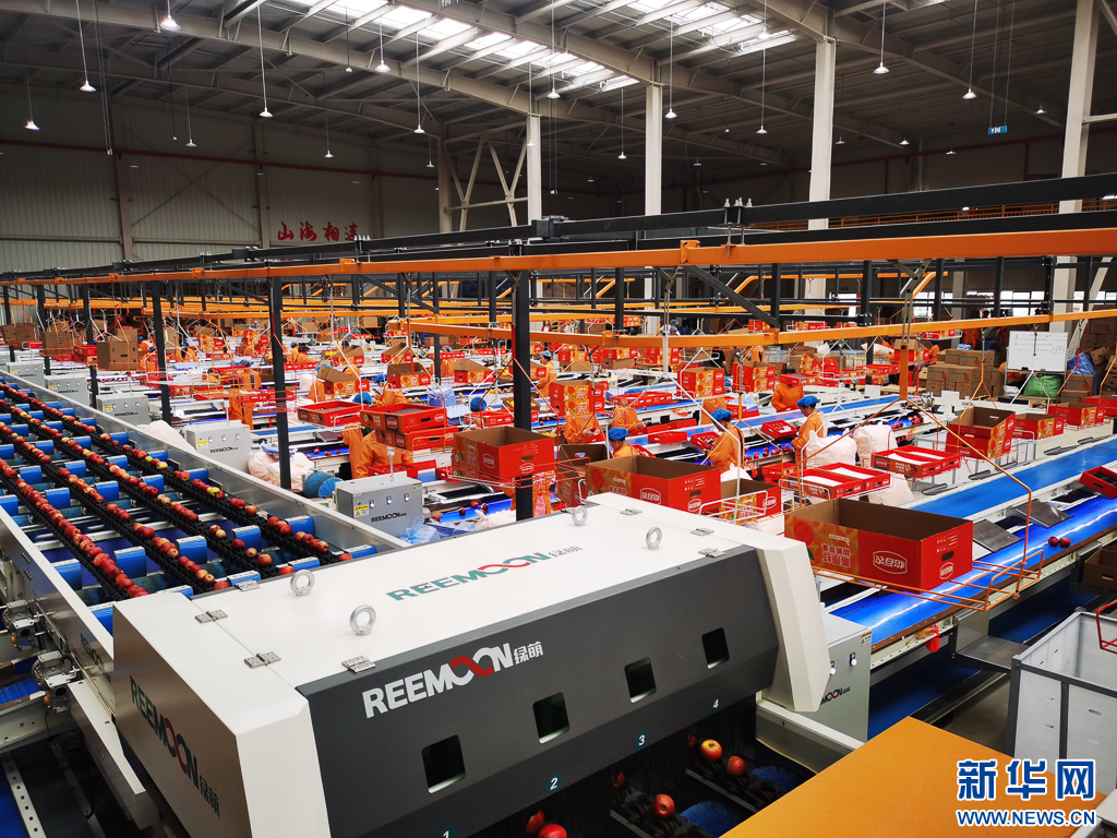 線上分揀忙,線下銷售熱。隨著各地訂單紛沓而至,智能分選車間里,大量工人忙得熱火朝天,張貼標識、封裝紙箱、搬運產品……把一箱箱蘋果源源不斷地運往北京、上海、廣東等地。