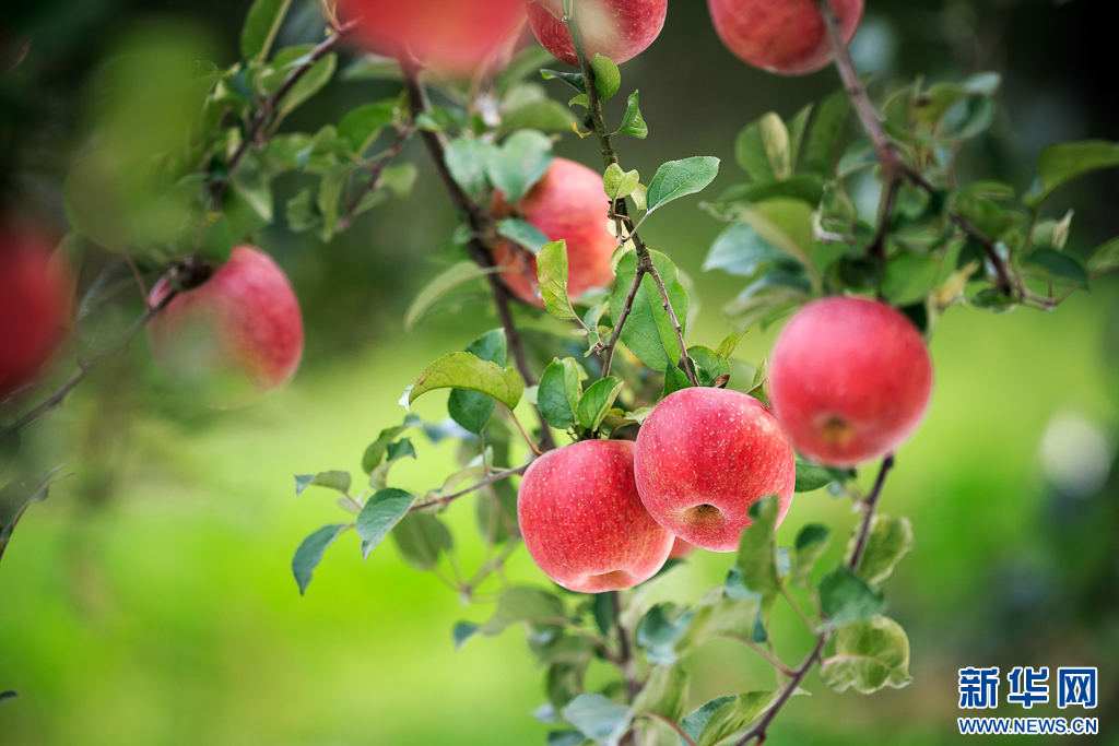 誘人的紅蘋果綴滿枝頭(10月8日攝)。新華網發( 郭家龍 攝)