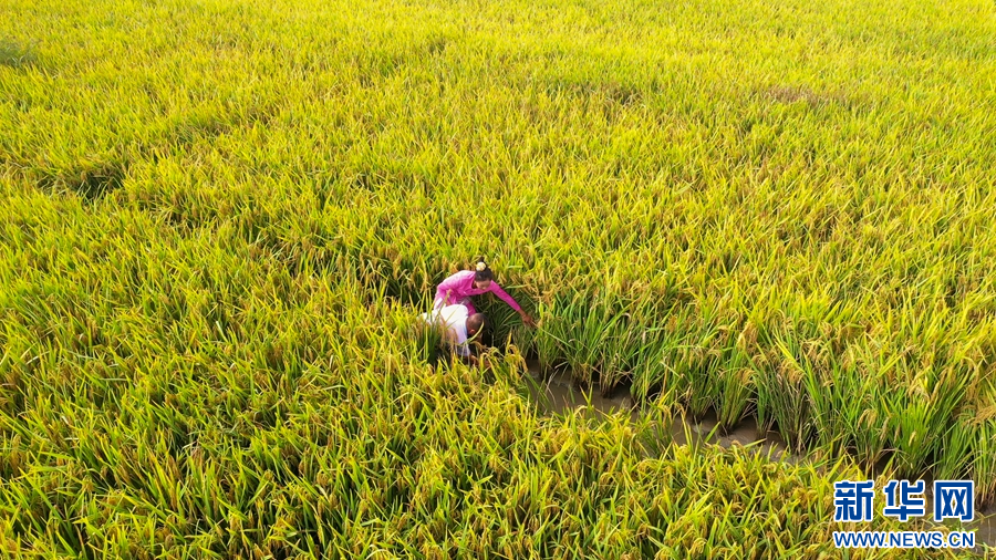 喜獲豐收的農戶(10月5日攝)。新華網發(孔扎選晶 攝)