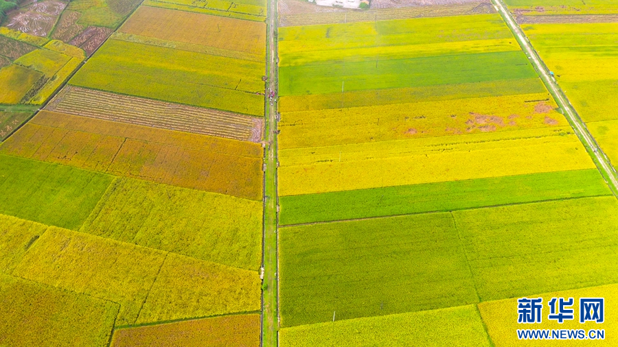 稻花魚養殖基地稻田航拍(10月5日攝)。新華網發(尹興朋 攝)