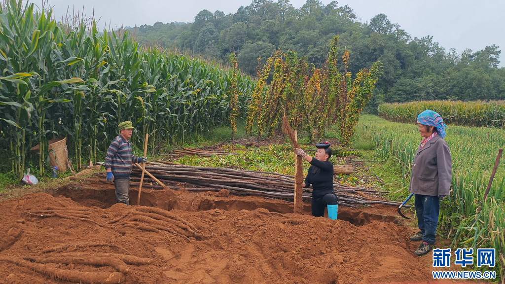 村民正在挖山藥(10月11日攝)。新華網發(祿豐市融媒體中心 供圖)