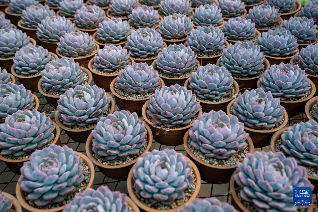 云南省昆明市晉寧區寶峰街道多肉植物以成色好、品質高的優點吸引不少年輕創業者,依托“小多肉”開拓大市場。目前寶峰街道多肉植物種植面積超過6000畝,年產值超4億元。