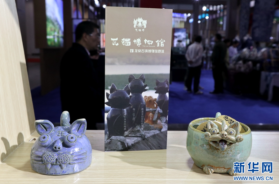 文博會上展出的瓦貓擺件(10月20日攝)。新華網 念新洪 攝