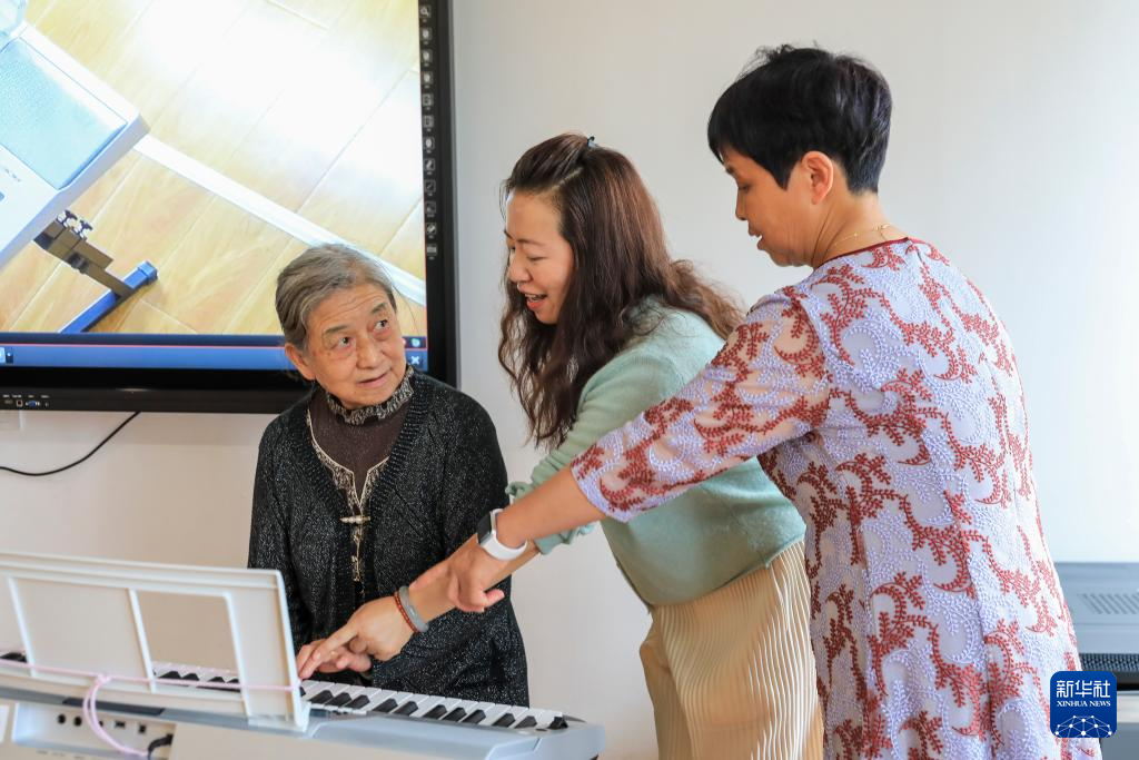 這是在云南老年大學的電子琴課上,老師(中)在授課。新華社記者 張旻曦 攝