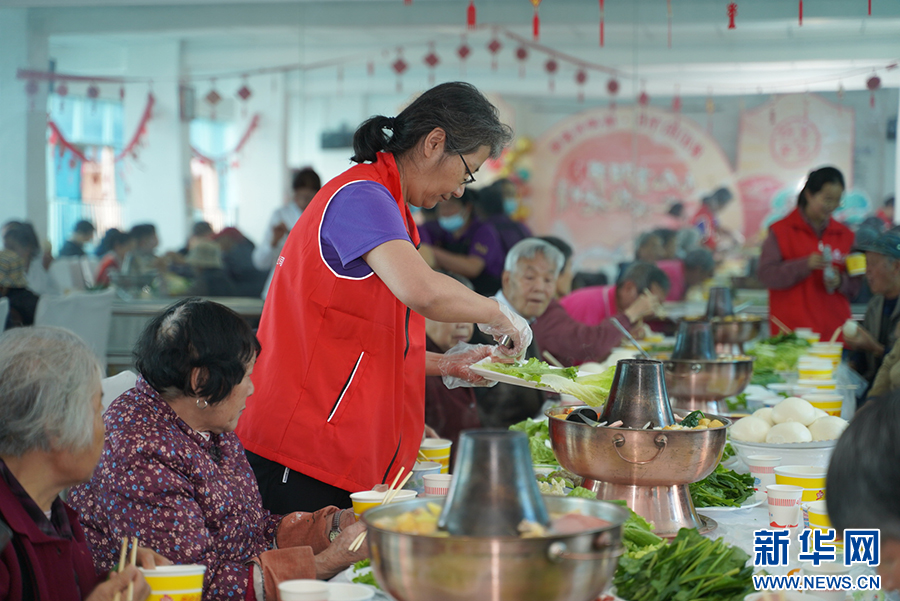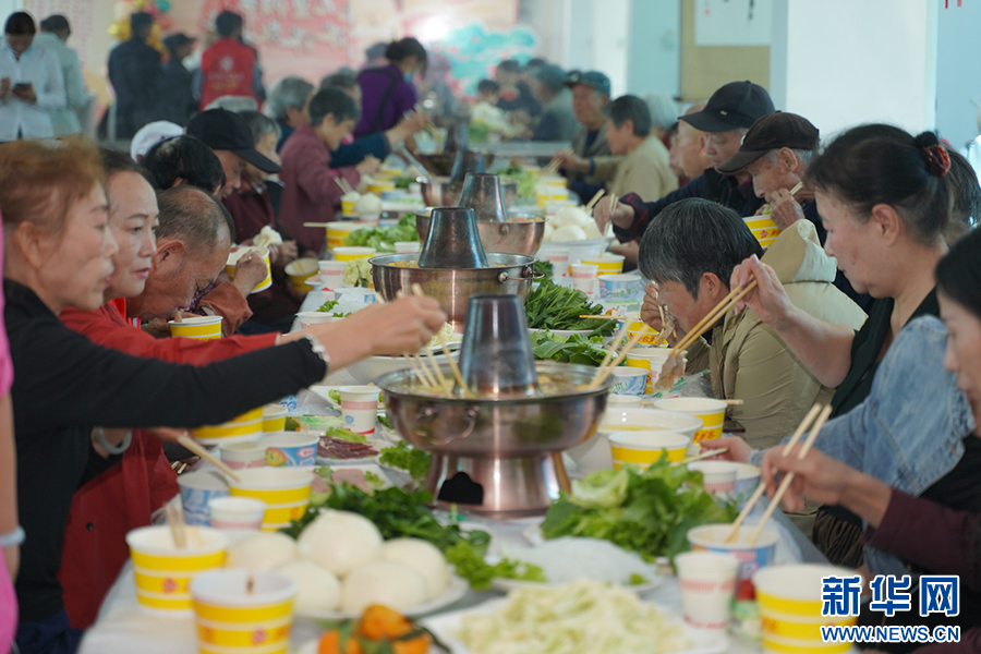 為老年人們準備豐盛的“長街宴”(10月23日攝)。新華網發(東華街道席子營社區供圖)