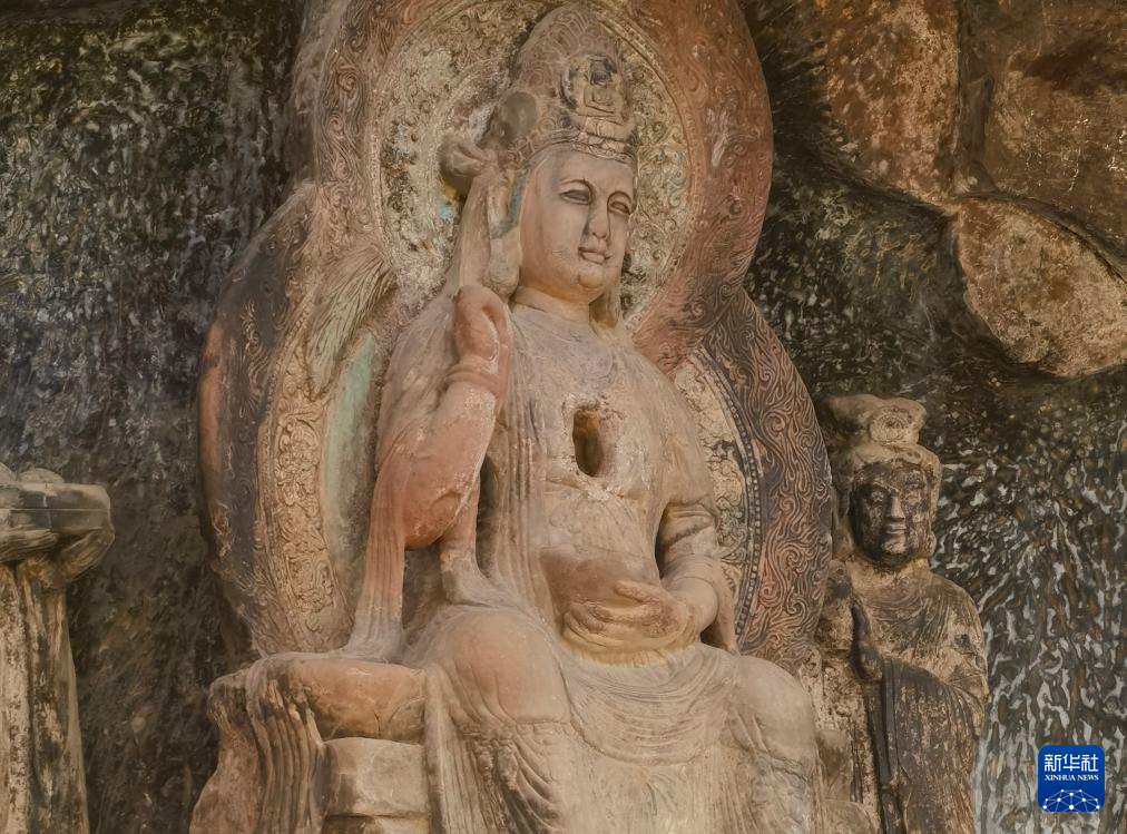 石鐘山石窟“甘露觀音”造像(9月5日攝)。新華社記者 黃韜銘 攝