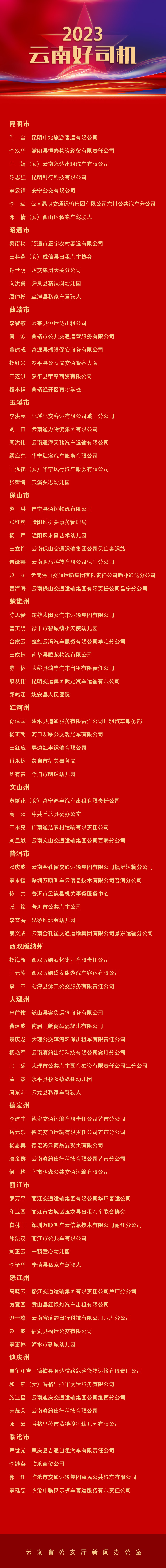 2023“云南好司機”名單。新華網發(云南省公安廳新聞辦公室 供圖)