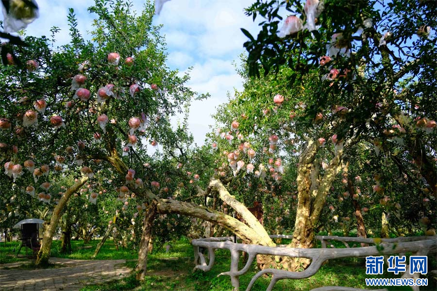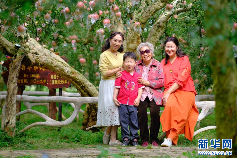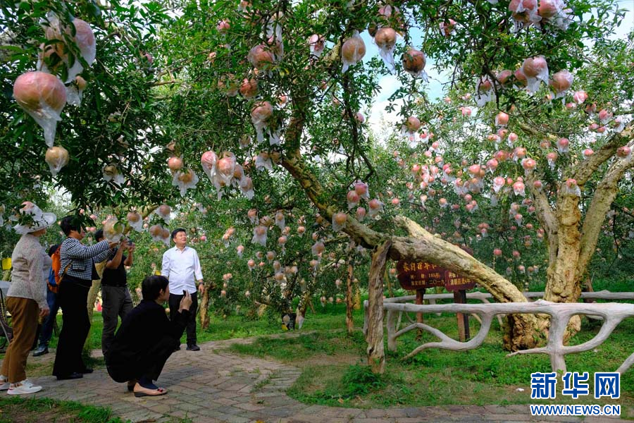 游人在古樹石榴園合影(10月26日攝)。新華網發(張玨 攝)