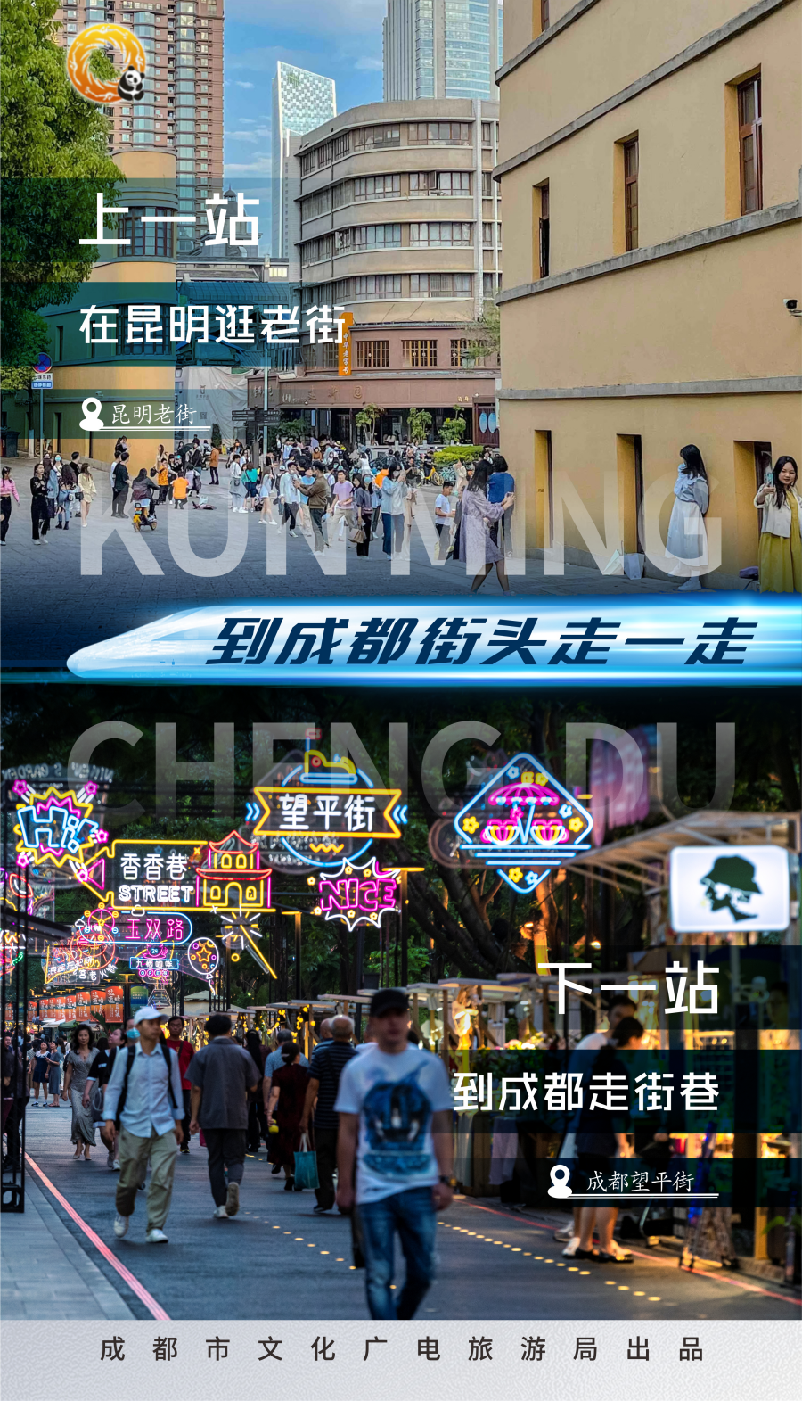 在昆明,可以在翠湖環湖一圈大口吸氧,在黃公東街打卡特色街店,在昆明老街邂逅原汁原味的古樸樓閣,用腳步去感受獨屬昆明的人文街道。在成都,可以到斌升街來杯咖啡,到望平街感受霓虹燈下的時尚氛圍,到芳華街感受滿滿的生活氣息,慢慢體會成都市井煙火與潮流文化的交融碰撞。