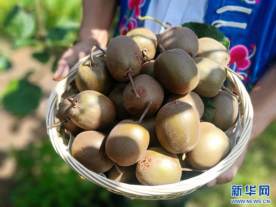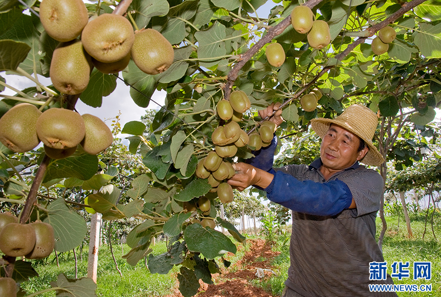 采摘獼猴桃(10月11日攝)。新華網發(張芹洪 攝)
