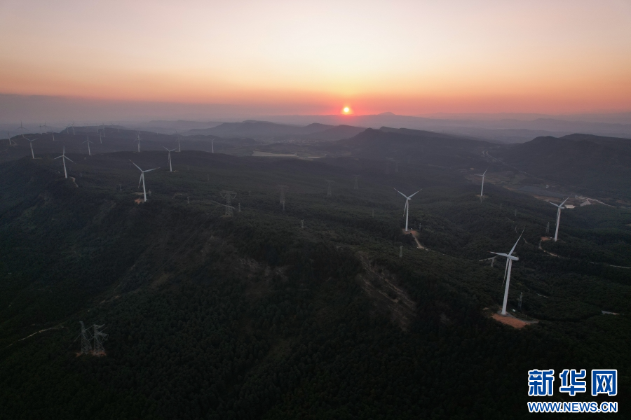近日,位于云南省曲靖市馬龍區諸葛南山的風力發電場,旋轉的風車與起伏的山巒、藍天白云、落日霞光構成了一幅美麗畫卷。近年來,曲靖市大力發展清潔能源,風力發電和光伏發電裝機總量逐年增加,為實現經濟社會高質量發展增添動能。