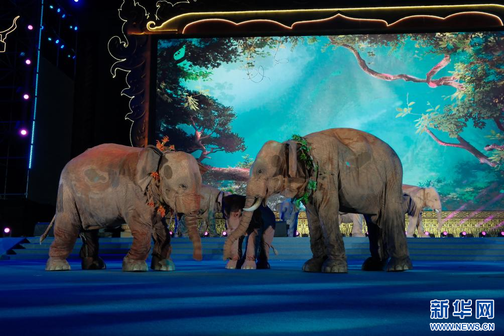 開幕式上的《大象來了!》大象主題木偶劇表演(11月11日攝)。