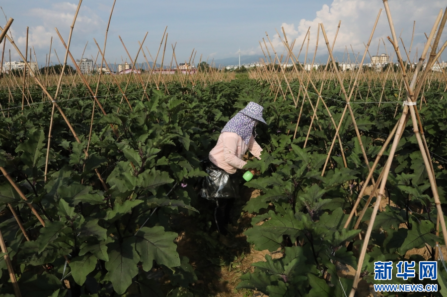 11月12日,農戶在云南省景洪市曼弄楓街道的田間管護茄子。