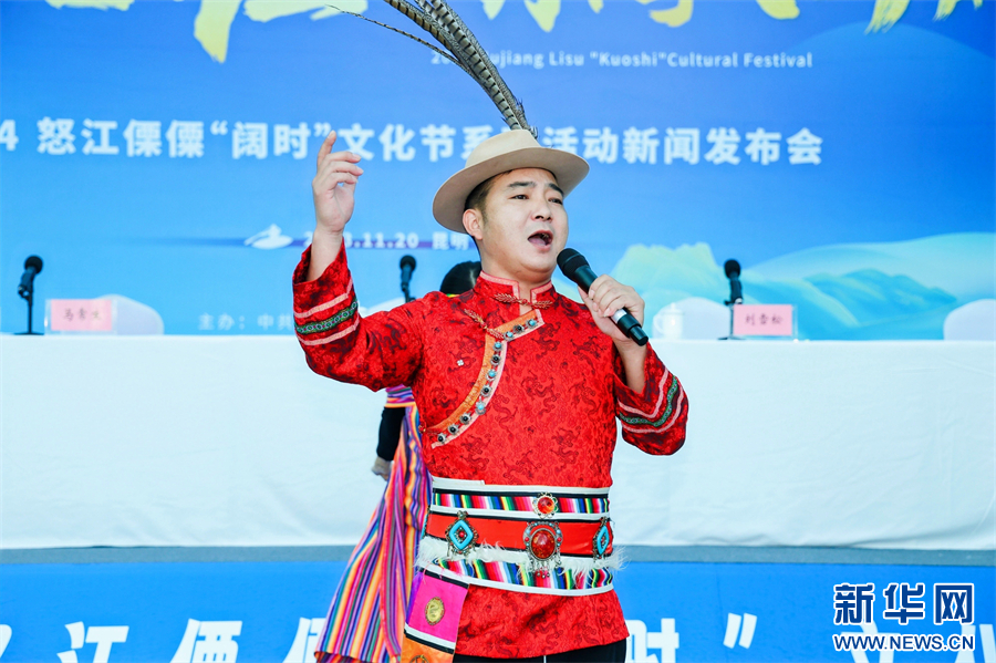發布會現場的特色表演(11月20日攝)。新華網發(怒江州委宣傳部 供圖)