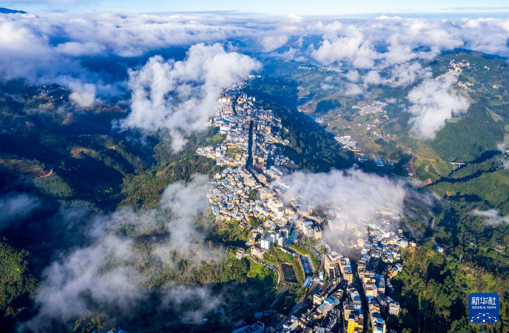 11月19日拍攝的綠春縣城(無人機照片)。新華社記者 陳欣波 攝