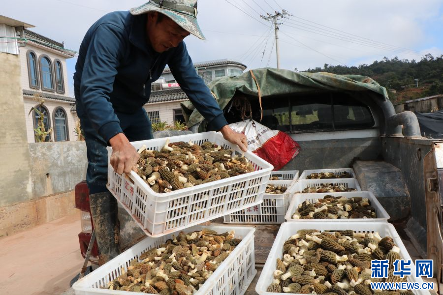 準備運往云南木水花野生菌交易中心的羊肚菌(11月20日攝)。新華網發(南華縣融媒體中心供圖)