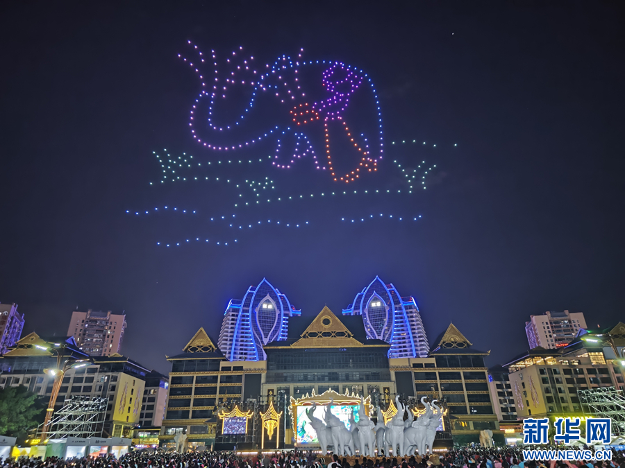 景洪市大象國際文化旅游節開幕式現場的無人機秀(11月11日攝)。新華網發(和潤仙 攝)