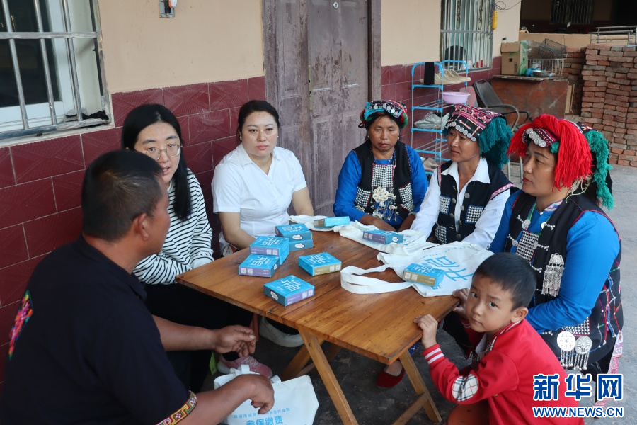 工作人員到磨憨鎮尚勇村宣傳醫保政策(11月21日攝)。新華網發(陳會敏 攝)