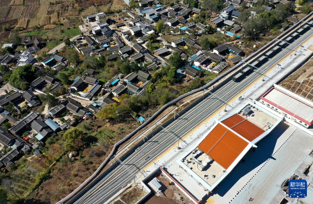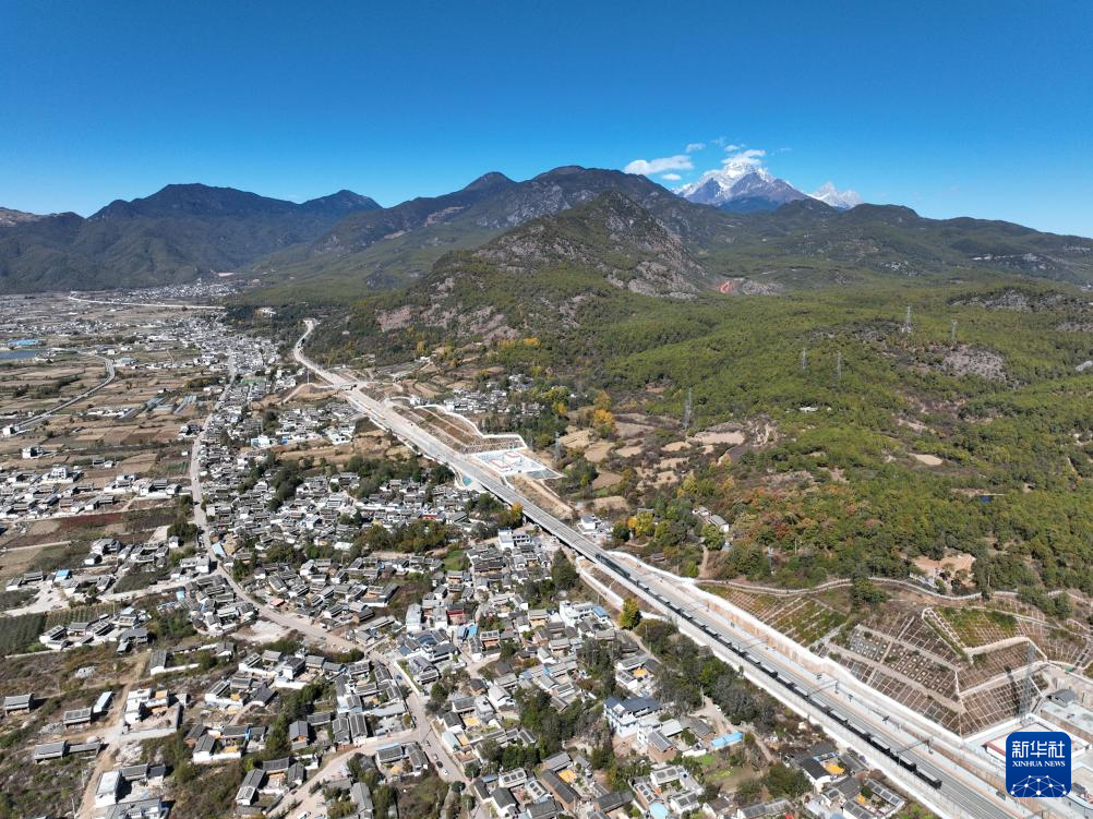 11月25日在麗江市境內拍攝的即將開通的麗香鐵路(無人機照片)。新華社記者 邢廣利 攝