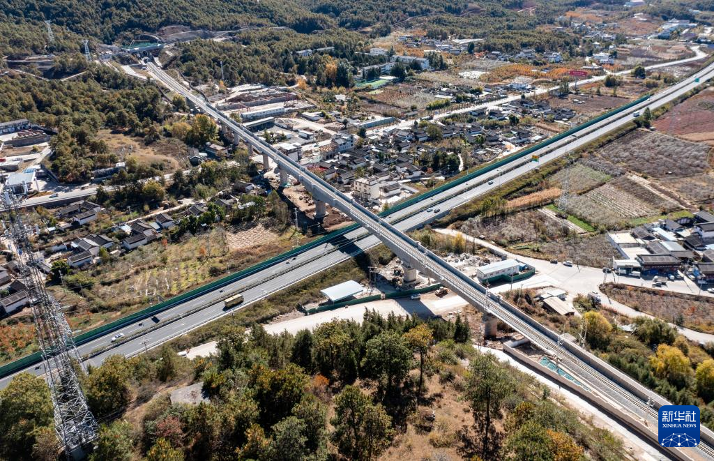 11月25日在麗江市境內拍攝的即將開通的麗香鐵路(無人機照片)。新華社記者 陳欣波 攝