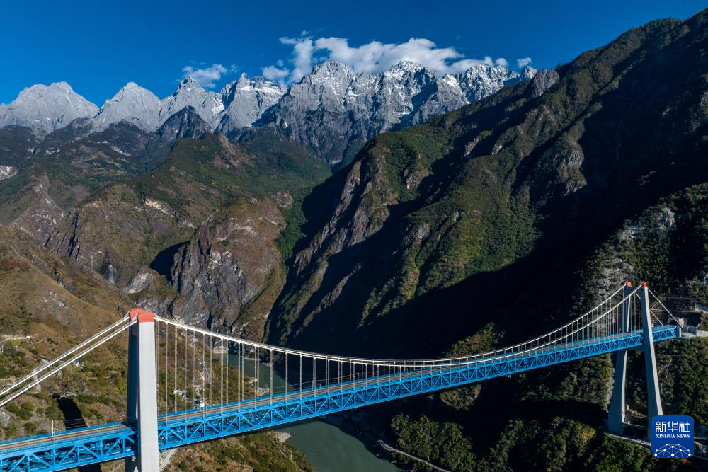 11月25日拍攝的麗香鐵路金沙江特大橋(無人機照片)。新華社記者 胡超 攝