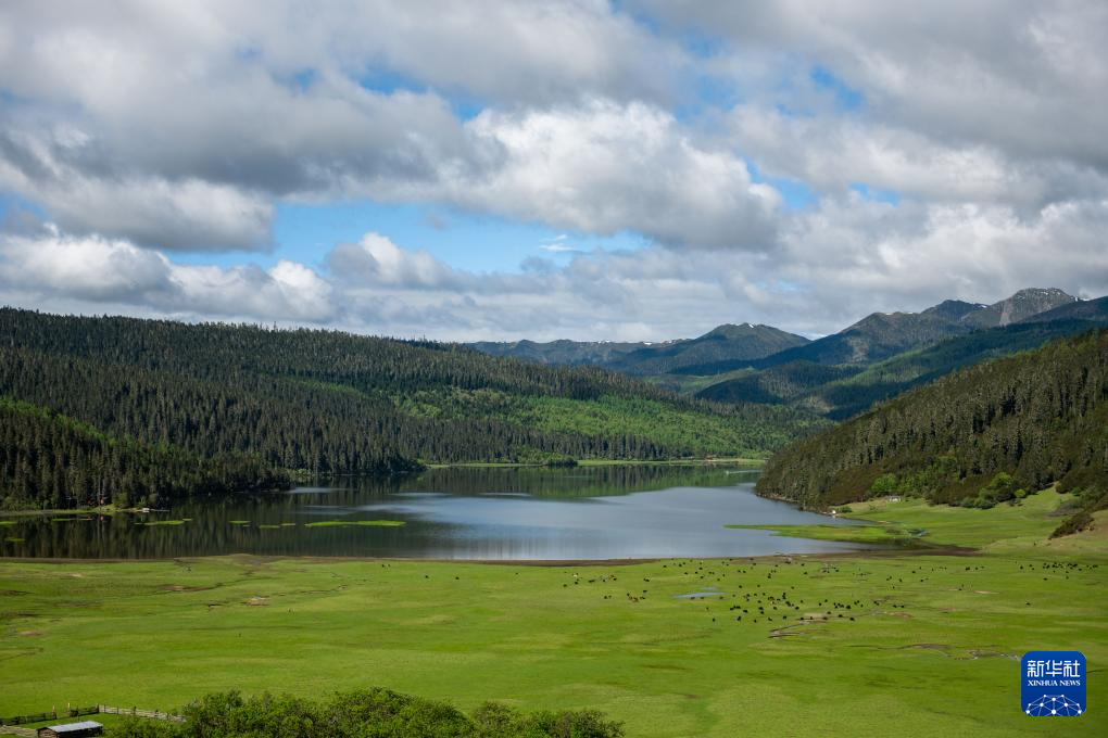 黑頸鶴和水鳥在納帕海自然保護區棲息。