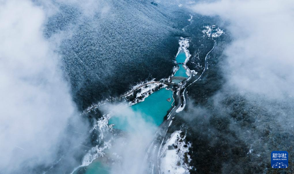 冬日的藍月谷云霧彌漫,白雪點綴,別樣美麗。